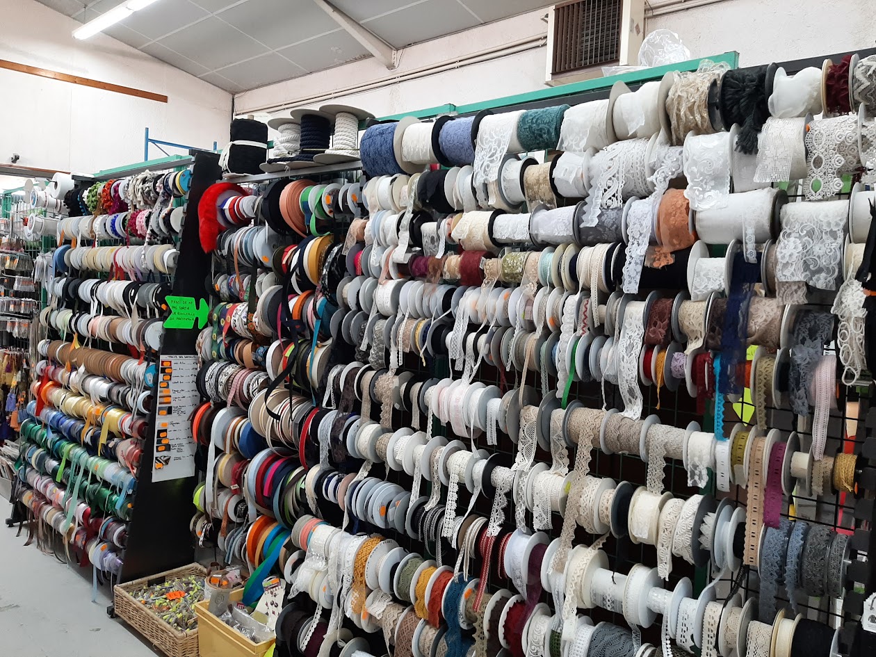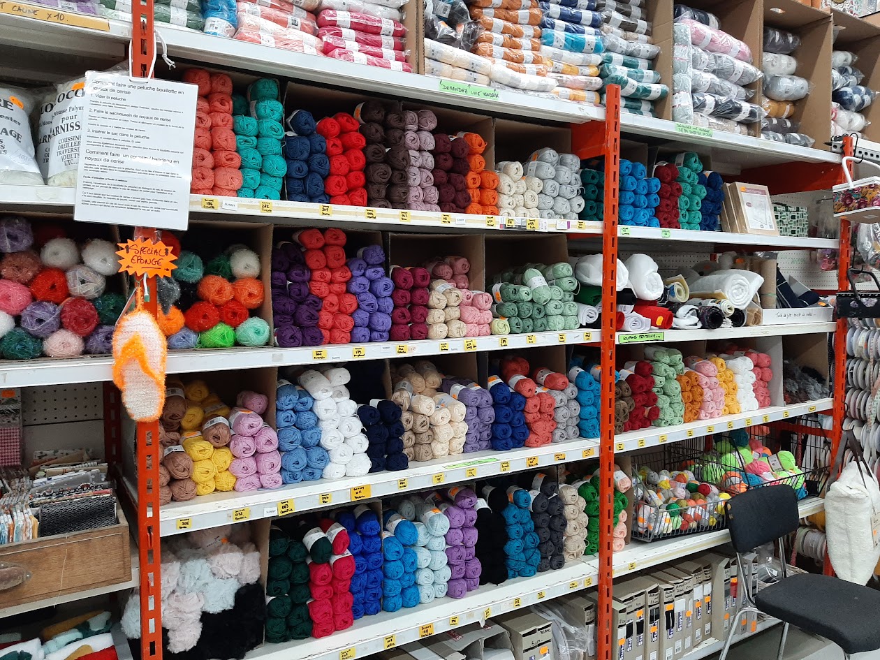 Côté mercerie, tout est prévu pour une couturière professionnelle ou débutante : fils à coudre, aiguilles, épingles, boutons, rubans, dentelles et galons. Des fermetures éclair, des boutons-pressions, du scratch et autres fournitures pour la confection et la réparation.