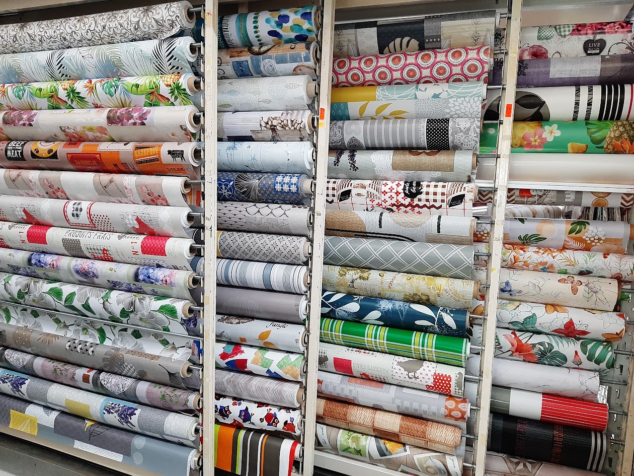 Vous retrouverez aussi un rayon toile cirée à la coupe, un large choix de motifs, de couleurs pour créer des sacs, des nappes, des tabliers et autres accessoires pratiques et originaux.